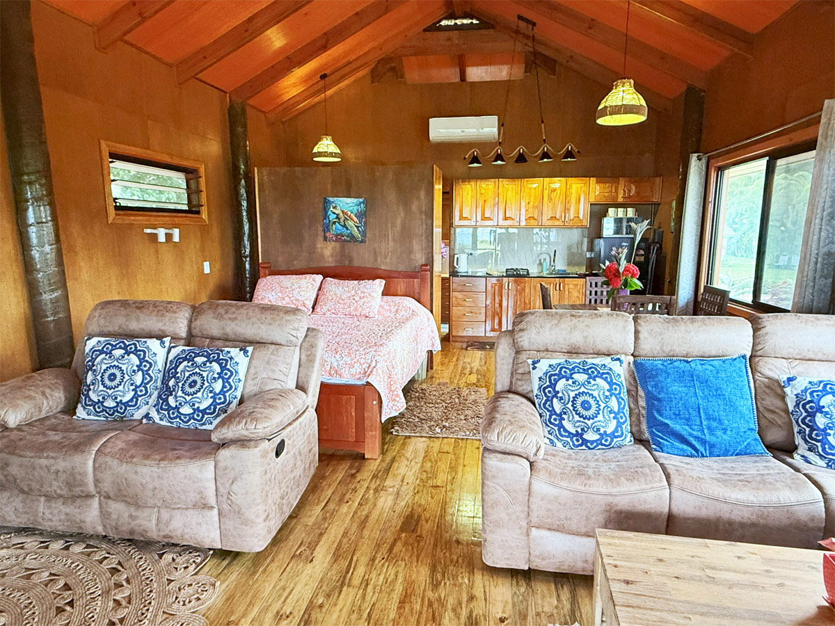 This brand-new beachfront bungalow is the ultimate home away from home, offering a unique blend of style, comfort, and modern conveniences. This 70 sqm (750sf) has breathtaking ocean views, just a short 70 second walk from Savusavu’s most beautiful golden sand beach. This VIP bungalow offers a luxurious stay with one King bed in a large, open studio-style room, perfect for relaxing in comfort. It has a spacious veranda, luxurious kitchen and bathroom, stained and polished wood interior and floors. An outdoor shower adds a refreshing touch after a day at the beach.