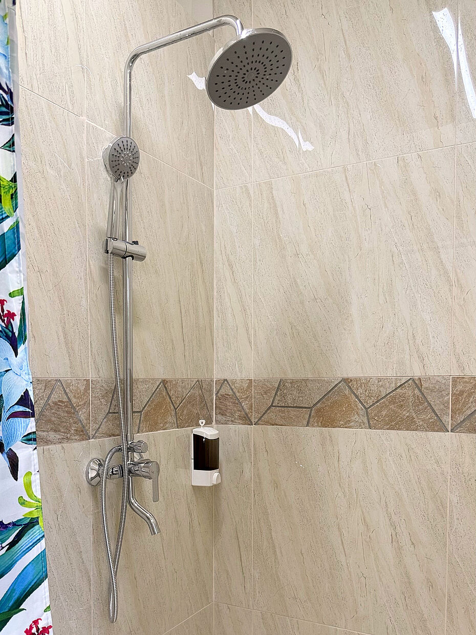 - Shampoo, Body Gel, Dish and hand soap pump dispensers provided